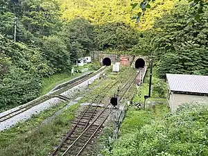Located in an 80m-wide gap in between two long tunnels in the cliffs along Uchiura Bay, the station has no road access and is known for being the most secluded station in Japan.[1][2]