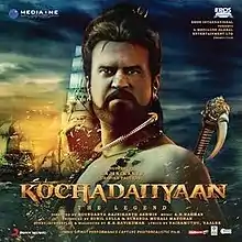 The original version, along the Telugu one of the soundtrack was released at Sathyam Cinemas, Royapettah in Chennai on 9 March 2014.[3][4] The audio launch invitations printed in China involved a one-fold invite with an imposing 3D image of Rajinikanth's character in the film.[34] The event started with a devotional song, followed by a dance tribute to Rajinikanth. The Tamil and Hindi theatrical trailers were broadcast, followed by a footage of the 'making of the film'. The event was presided by actors, Rajinikanth, Shah Rukh Khan, Deepika Padukone, Nasser, Jackie Shroff; directors K. S. Ravikumar, K. Balachander, Soundarya Rajinikanth, S. Shankar; composer A. R. Rahman, Resul Pookutty; and lyricist Vairamuthu.[31][35] The full TV telecast of the audio launch and trailer release function was telecast on 30 March 2014 on Jaya TV.