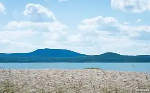 Kokshetau National Park (Kazakh: Көкшетау ұлттық паркі, Kökşetau ūlttyq parkı) features the unique landscape, archaeological sites, and recreational opportunities of the Kazakh Uplands of Northern Kazakhstan. Located in the transition zone between the Siberian taiga (to the north) and the southern steppes, the terrain is an "island" of forests, lakes, and mountains surrounded by steppe.[1] Kokshetau is located in Zerendi District, Aqmola Region and Aiyrtau District, North Kazakhstan Region. The park boundary is 45 kilometres (28 mi) west of the city of Kokshetau itself, and 275 kilometres (171 mi) northwest of the capital city of Nur-Sultan.