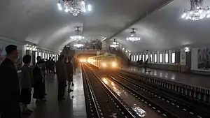 Konsol Station is a station on Hyŏksin Line of the Pyongyang Metro.[1] It is notable for being the only station in the Pyongyang Metro to use side platforms, as all other stations use an island platform configuration instead.[1]