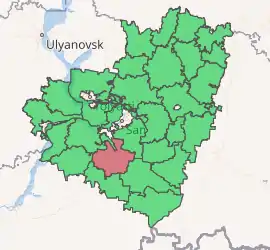 Krasnoarmeysky District (Russian: Красноарме́йский райо́н) is an administrative[1] and municipal[6] district (raion), one of the twenty-seven in Samara Oblast, Russia. It is located in the southwest of the oblast. The area of the district is 2,190 square kilometers (850 sq mi).[3] Its administrative center is the rural locality (a selo) of Krasnoarmeyskoye.[2] Population: 18,050 (2010 Census);[4] 19,211 (2002 Census);[9] 17,516 (1989 Census).[10] The population of Krasnoarmeyskoye accounts for 29.6% of the district's total population.[4]