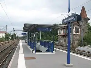 Krimmeri-Meinau station (French: Gare de Krimmeri-Meinau) is the last passenger station before the German border on the Appenweier–Strasbourg railway line. Both sides being within the Schengen Area, no passport or border controls apply.