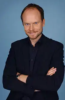 For the larger audience he became known for the radio show Hassan at Sveriges Radio and Knesset at ZTV.[3] In 1996 he started working in television at TV4 where he presented his own talk show Sen kväll med Luuk.[4] The talk show lasted until 2004. In early 2005 he started presenting God natt, Sverige along with his then wife Carina Berg.[5] The show was cancelled after just one season and Luuk left TV4 after that.[5] With the help of Peter Settman Luuk got work at SVT and in late 2007 he presented the show Videokväll hos Luuk.[6]