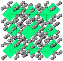 Krypton hydride (Kr(H2)4) crystals can be grown at pressures above 5 GPa. They have a face-centered cubic structure where krypton octahedra are surrounded by randomly oriented hydrogen molecules.[22]
