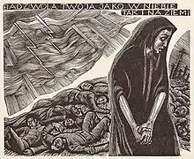 ![]() "Ojcze Nasz" by Krystyna Wróblewska (1950); metaphor of Nazi crimes in Poland | |