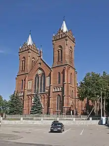 The Great Synagogue in Kupiškis was built of stone. The red brick portion was a Misnagdim Synagogue. The Great Synagogue was used as the "Culture House" during the Soviet period. The Misnagdim portion is now used as a boiler room for heating the main building which now contains the Public Library and Wall of Memory Holocaust Memorial erected on July 13, 2004. The Memorial dedication service was initiated and attended by Jewish descendants of the residents of Kupiskis. They held a worship service, the first since the destruction of the Jewish community in 1941, in the library which was once the synagogue. Rabbi Michael Mayersohn of Orange County, CA, whose paternal grandparents had lived in Kupiskis, led the historic worship service.
