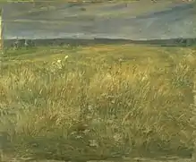 By 1896, Kuroda was at the peak of his career.[12] That May Okakura Tenshin, the Dean of the Tokyo School of Fine Arts (Tokyo Bijutsu Gakkо̄, present-day Tokyo National University of Fine Arts and Music), appointed Kuroda as the director of the newly established a Department of Western-style Painting.[15] This allowed him to design an even broader curriculum, meant for general students of art, and to be better equipped to reach a broader public. An academic role, with its emphasis on structure and conformity, contrasted with the painter's focus on individuality, but Kuroda nonetheless approached his new role with zeal. In particular, Kuroda stressed the importance of painting outdoors directly from nature (plein air), and insisted that courses in anatomy and the sketching of a live nude model be included in the curriculum.[14]
