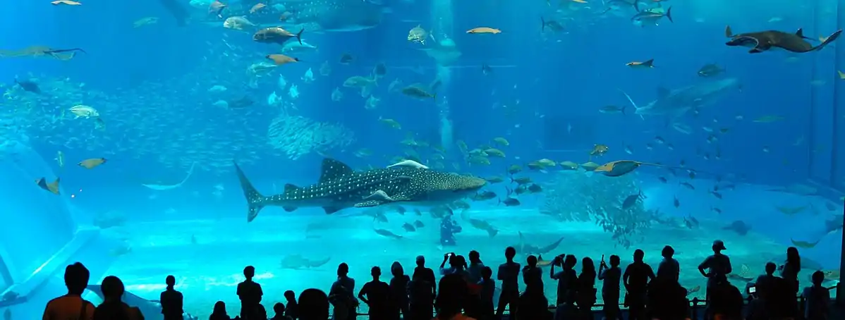 The Okinawa Churaumi Aquarium (沖縄美ら海水族館, Okinawa Churaumi Suizokukan), formerly known as the Okinawa Ocean Expo Aquarium, is located within the Ocean Expo Park in Okinawa, Japan. It is a member of the Japanese Association of Zoos and Aquariums (JAZA), and was the largest aquarium in the world until it was surpassed by the Georgia Aquarium in 2005. The aquarium has the exhibit, “Encounter the Okinawan Sea”,[7] which reproduces the sea of Okinawa and most of the creatures that live in it.[2] Churaumi was selected as the name of the aquarium by public vote amongst Japanese people: chura means "beautiful" or "graceful" in the Okinawan language, and umi means "ocean" in Japanese.