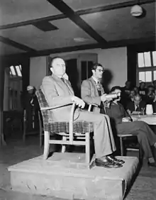 ![]() Kurt Sitte, witness for the prosecution, at the Buchenwald War Crimes Trial, Dachau, 1947, April 16 | |