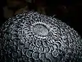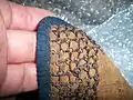 The Japanese used many different weave methods including: a square 4-in-1 pattern (so gusari), a hexagonal 6-in-1 pattern (hana gusari) and a European 4-in-1 (nanban gusari),[8] the kusari links could be doubled up and some examples were tripled in a possible attempt to make the kusari bullet resistant.[9] The links were lacquered black to prevent rusting, and were always stitched onto a backing of cloth or leather. The kusari was sometimes concealed entirely between layers of cloth.[10]