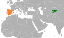 Kyrgyzstan–Spain relations are the bilateral and diplomatic relations between these two countries. Kyrgyzstan has no embassy in Spain[1] or consulates[2] Spain does not have an embassy in Kyrgyzstan but the embassy in Astana, Kazakhstan is headed for Kyrgyzstan.[3]