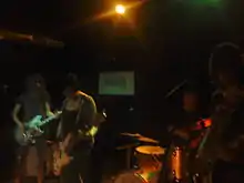The other tracks on the album were recorded at the Terrarium Studios in Northeast Minneapolis during February, 2005.[6][7] As before, Annie Holoien and Maren "Sturgeon" Macosko played guitar, Danny Henry played the drums, and Susy Sharp played the bass guitar while all four bandmembers sang.[7][8] Every track on the album clocked in at under three minutes in length.[9] The album was released on June 28, 2005 on CD and limited-edition pink vinyl, of which 220 copies were pressed.[10] "Roller Girls" was used from 2010-2016 as a "hype video" for the Minnesota RollerGirls, the roller derby league which inspired the song, and continued to be used afterward as the skate-out theme for the B-Team Minnesota Nice.