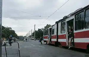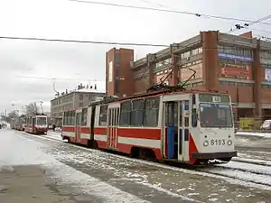 LVS-86 is a model of tramcar developed at the Leningrad Tram Manufacturing Plant in the former Soviet Union. LVS stands for "Leningrad-made articulated tram" in Russian, and 86 refers to the model year. The design was based on the LVS-80 tramcar. 473 LVS-86s were built from 1987 until 1997. LVS-86s currently run in Saint Petersburg and formerly in Arkhangelsk. Tram operation in Arkhangelsk ceased in July 2004.