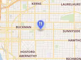 La Calaca Comelona (English: "The Hungry Skeleton") is a Mexican restaurant on Belmont Street in southeast Portland's Buckman neighborhood.[1] Patricia Cabrera is the chef and owner.[2] The restaurant has a skeletal decor and a "secret" garden.[3] According to Michael Russell of The Oregonian, the restaurant is "known for lush back patio, house-made salsas and authentic dishes representing multiple regions of Mexico".[4] The menu includes three varieties of alambre,[5] mole,[6] papitas, quesadillas, and tacos.[7]