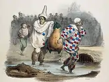 La Caricature morale, politique et littéraire was published from 1830 to 1843. Auguste Audibert was editor and Charles Philipon (1800–61) was director and main author.[1] Honoré de Balzac and Louis Desnoyers assisted Philipon in writing some of the magazines issues. Primary artists were Honoré Daumier and Jean Ignace Isidore Gérard Grandville with caricature contributions from many artists including Henry Monnier, Alexandre Decamps, Auguste Raffet, Paul Gavarni, Achille Devéria, Auguste Desperret, Eugène Forest, Benjamin Roubaud. The journal was founded after the censorship laws had been relaxed following the July Revolution of 1830 in which Louis Philippe came to power. It covered both politics and art. 251 issues appeared between 1830 and 1835, each of four pages, with two or three lithographs.[2]