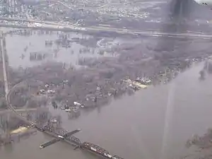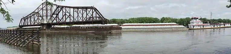The La Crosse Rail Bridge has taken a significant amount of abuse over the years. In 2011, it was ranked fourth in most boat-related collisions out of 22 states, 7,500 miles of railway and 1,200 other bridges.[1] One incident was as recent as July 22, 2011, when a barge clipped the side of the bridge and halted river traffic.[9] The Winona bridge became part of the Chicago and Northwestern system. That bridge was used until 1977. The Chicago and Northwestern gained trackage rights to use the La Crosse Rail Bridge. The C & NW successor, Union Pacific, accesses in this manner from Tomah to Winona.[10]