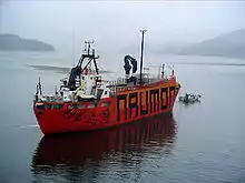 The Naumon is a floating cultural art center that has been to Barcelona, Sardinia, Portugal, Beirut, Taipei, Newcastle (2007), Haifa and Duisburg, carrying various artistic, educational and cultural containers, including the shows Naumaquia, Sub, Terramaquia and Matria. It was 60m-long Norwegian ship built to break through Arctic ice, build in 1965 in a Norwegian shipyard located 200 miles from the Arctic Circle. La Fura dels Baus bought the Naumon in July 2003. In 2019, La Fura dels Baus commemorates the 500th anniversary since the beginning of Ferdinand Magellan's world journey.