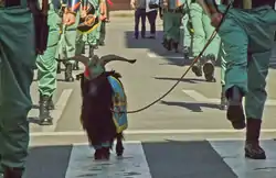 - The Legion has had several mascots during its history, such as monkeys, chickens, capercaillies, wild boars, barbary sheep (Spanish: arruis), bears, and parrots. The modern mascot is the Goat of the Spanish Legion. It usually appears at parades and ceremonies, wearing a Legion cap and accompanied by a Legionary, alongside the Legion's marker guard (gastadores), leading the marching troops.