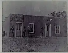Sacramental records for the pueblo church at Abiquiu, Province of New Mexico, often referred to a settlement Nuestra Señora de Guadalupe de la Cueva. This hamlet probably served as the initial source of settlers that later formed the future village of La Cañada de La Madera approximately two miles due north of this site. At some point in time in the early 1900s, the name of the village of La Cueva was changed to Cañada de La Madera. The first US Post Office was established under the name of La Madera, rumored in order to accommodate postal authorities. The first postmaster, Elias Gallegos, was appointed July 9, 1906. The post office was operated within the mercantile store that Elias Gallegos had previously built.