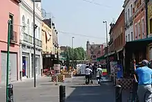The neighborhood is defined by both its history and its social structure with most of formerly occupied by the massive La Merced monastery complex.[3] The neighborhood is divided into three zones. The “antigua” (old) section is the largest with 97 blocks and corresponds to the lands of the La Merced monastery and the first La Merced market. It is defined by the streets of San Pablo to the south, Corregiadora to the north, Circunvalación to the east and José María Pino Suárez to the west. Here the population is more stable although it has suffered a loss of population like the rest of the historic center. Its businesses have shifted from retail outlets to warehouses with the exception of the westernmost section. The western section is almost entirely commercial with few residences. This area also has the largest number of street vendors.[1]