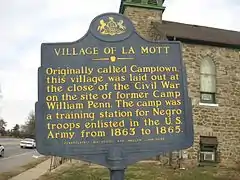 Formerly known as Camp Town, La Mott was the site of Camp William Penn, the first federal training site for black soldiers during the Civil War.