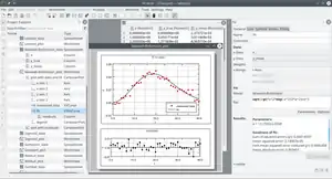 It is scriptable using Qt Script for Applications (QSA). 2D and 3D plots of data can be rendered in a "worksheet", either by directly reading datafiles or from a spreadsheet, which LabPlot supports. It has interfaces to several libraries, including GSL for data analysis, the Qwt3d libraries for 3D plotting using OpenGL, FFTW for fast Fourier transforms and supports exporting to 80 image formats and raw PostScript. Other key features include live data plotting, support for the FITS format, for LaTeX and Rich Text labels, data masking, data picking from images, multiple plots in the same worksheet, pie charts, bar charts/histograms, interpolation, data smoothing, peak fitting, nonlinear curve fitting, regression, deconvolution, integral transforms, and others (see developers website listed below for details). The interface is translated in various languages.