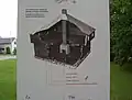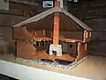 The Lacolle Mills Blockhouse is a timber framed square two-storey structure. The second-level floor is cantilevered with a pavilion roof.[5] The blockhouse is built on land that overlooks the Lacolle River.[5] The blockhouse's architecture was typical of a small defensive military structure in the area not requiring significant experience to construct.[5] The blockhouse walls are constructed of squared half timber stacked horizontally.[5] The walls have loopholes, providing the occupant with protection, while firing on the enemy.[5] In the centre of the blockhouse was a stone hearth, which provided heating.[5] The British military constructed over 25 forts of this type in Lower Canada between 1760 and 1840.[5]