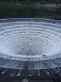 The dam's design is unusual in having two totally enclosed bellmouth spillway overflows (locally named the "plugholes") at the side of the wall. These are stone and of 78 feet (24 m) diameter with a drop of 66 feet (20 m). The plugholes regulate water levels in the reservoir by draining away excess water when they overflow. The water is then carried to the River Derwent through tunnels.[3] The overflows originally had walkways around them,[5] but they were dismantled many years ago. The plugholes typically overflow in winter months if there has been wet or snowy weather in the nearby hills. According to Severn Trent, the reservoir’s operating company, the overflowing plug holes attract many visitors each year.[6]