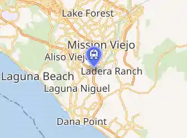 Laguna Niguel/Mission Viejo is a station on the Inland Empire–Orange County Line and Orange County Line of the Metrolink commuter rail system around Southern California. Originally built to serve Metrolink, the station became a stop for Amtrak's Pacific Surfliner in 2007 but is currently not used as a limited Amtrak stop on the Pacific Surfliner route.[4][5] Total daily ridership for Metrolink and Amtrak was about 500 passengers in fiscal year 2009.[3] Of the 73 California stations served by Amtrak, Laguna Niguel/Mission Viejo was the 71st-busiest in FY2010, boarding or detraining an average of approximately seven passengers daily.[6] Metrolink trains terminate here[7] and if they do by noon time, one train set moves over to a nearby siding track until the rush hour.