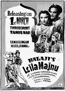 Laila Majnu is a 1950 Indian Tamil-language historical romance film directed by F. Nagoor. Based on the Persian tale of Layla and Majnun, the film stars T. R. Mahalingam and M. V. Rajamma as the title characters. It was released on 1 March 1950.