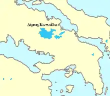 Lake Copais, also spelled Kopais or Kopaida (Ancient Greek: Κωπαΐς; Greek: Κωπαΐδα), was a lake in the centre of Boeotia, Greece, west of Thebes. It was drained in the late 19th century. It is now flat dry land and is still known as Kopaida. A one-time island in the lake was modified in ancient times into a megalithic citadel, now called Gla, though its ancient name is not known. It may be the city of Arne mentioned by Homer.