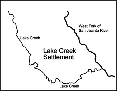 Within two years of the arrival of the original colonists in 1831, this settlement between the West Fork of the San Jacinto River and the stream called Lake Creek had already become known throughout Mexican Texas as the "Lake Creek Settlement."[16] This area was also commonly referred to as the "neighborhood of Lake Creek," the "District of Lake Creek," the "Precinct of Lake Creek," or simply as "Lake Creek."[16]