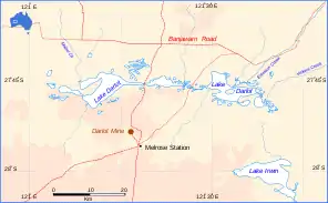 Lake Darlot is an ephemeral lake in the centre of Western Australia, lying approximately 50 km (31 mi) east-north-east of Leinster, and 125 km (78 mi) north of Leonora in the Goldfields-Esperance region.[1] Its surface elevation is 434 metres above mean sea-level.[2]