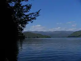 Several waterfalls flow directly into the lake, including Laurel Fork Falls, Mill Creek Falls, Wright Fork Falls, and Moondance Falls.[6][7]