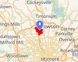 Lake Roland Historic District, declared in 1992, is a national historic district in Baltimore City and Baltimore County, Maryland, United States.[4] It consists of a man-made lake, Lake Roland, portions of the Jones Falls and Roland Run streambeds, and portions of the rights-of-way of former Green Spring Valley Railroad and the Northern Central Railway. The central portion of the historic district is occupied by Lake Roland, with a stone dam capped by a stone valve house, built in 1858–1861. The lake was developed in the mid 19th century as a part of the city's municipal water system and built as the main reservoir. The lake is surrounded by open areas and woods.[13]