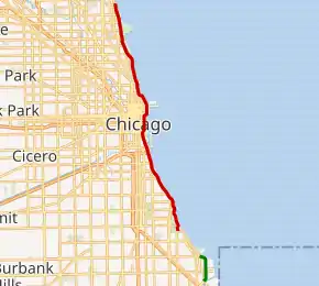 ![]() Original portion of Lake Shore Drive in red 2013 extension in dark green | |||