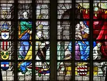 Detail of Glass 13 in the Janskerk, Gouda with a portrait of the donor Petrus van Zuyren on the left