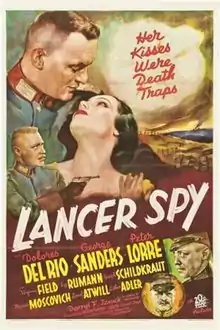 Lancer Spy is a 1937 American thriller film about an Englishman (Sanders) who impersonates a German officer, receiving fame upon arriving in Germany. A female German spy (del Río) is instructed to check on him but falls in love with him instead.