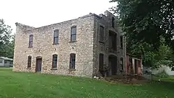 It is a one-part, two-story commercial building of native limestone blocks with the original portion 25 by 50 feet (7.6 m × 15.2 m) in plan. It has a decorative wooden Italianate-style cornice. A 25 by 50 feet (7.6 m × 15.2 m) single-story extension was added in 1910.[2]
