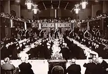 The ceremony is accompanied by the song Alles schweige, jeder neige / Ernsten Tönen nun sein Ohr, which was written by August Niemann in 1782. Whereas Niemann's version praises Emperor Joseph II, the lyrics of the 'Landesvater' were changed in the 19th century, and have since then praised Germany, instead of a single monarch.[2] The modern version emanates from Friedrich Silcher (1823).
