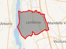 Landiona is a comune (municipality) in the Province of Novara in the Italian region Piedmont, located about 70 kilometres (43 mi) northeast of Turin and about 15 kilometres (9 mi) northwest of Novara. As of 31 December 2004, it had a population of 600 and an area of 7.3 square kilometres (2.8 sq mi).[3]
