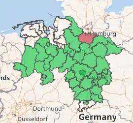 Harburg is a district (Landkreis) in Lower Saxony, Germany. It takes its name from the town of Harburg upon Elbe, which used to be the capital of the district but is now part of Hamburg. It is bounded by (from the east and clockwise) the districts of Lüneburg, Heidekreis, Rotenburg (Wümme) and Stade, by the City of Hamburg and the State of Schleswig-Holstein (District of Lauenburg).