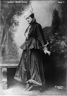 Lanvin made clothes for her daughter, Marie-Blanche de Polignac, which began to attract the attention of a number of wealthy people, who requested copies for their own children. Soon, Lanvin was making dresses for their mothers,[2] and some of the most famous names in Europe were included in the clientele of her new boutique on the rue du Faubourg Saint-Honoré, Paris. In 1909, Lanvin joined the Syndicat de la Couture, which marked her formal status as a couturière. The Lanvin logo was inspired by a photograph taken for Jeanne Lanvin as she attended a ball with her daughter wearing matching outfits in 1907.[2]