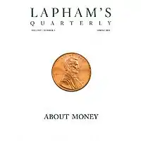 Lapham's Quarterly is a literary magazine established in 2007 by former Harper's Magazine editor Lewis H. Lapham.[1] Each issue examines a theme using primary source material from history. The inaugural issue "States of War" contained dozens of essays, speeches, and excerpts from historical authors ranging from Thucydides, William Shakespeare, and Sun Tzu to Mark Twain, among others. Recent issue themes included "Foreigners", "Time", and "Youth". Each issue includes an introductory essay by Lapham (or a member of the magazine's editorial board),[2] readings from historical contributors, and essays by contemporary writers and historians.