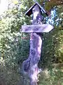 A wooden sign to the death place of Lithuanian resistants in Pašušvys Forest