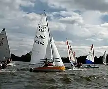 The boat is very popular in the UK with a new builder (Ovington boats) signed up in 2010. In the UK the class became very popular through the university team racing circuit. The boat was also popular in clubs as it is suited to a wide range of crew weights, typically from 18 stone up to 25 stone. It is still one of the fastest non-trapeze dinghies available. Larks participate in handicap racing, utilising a Portsmouth number of 1073.[1]