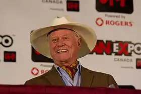 Hagman reprised his role as J.R. Ewing in TNT's continuation of Dallas, which began in 2012.[27][28] In 2011, while filming the new series, Hagman said, "Of course it's fun to play the villain."[29] As a result of Hagman's death in 2012, his character J.R. was killed off in season two of Dallas. Unused footage of Hagman was used in season three as part of the season's story arc, which aired in 2014.