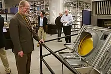 Laurence van Cott Niven (/ˈnɪvən/; born April 30, 1938) is an American science fiction writer.[2] His best-known works are Ringworld (1970), which received Hugo, Locus, Ditmar, and Nebula awards, and, with Jerry Pournelle, The Mote in God's Eye (1974) and Lucifer's Hammer (1977). The Science Fiction and Fantasy Writers of America named him the 2015 recipient of the Damon Knight Memorial Grand Master Award.[3] His work is primarily hard science fiction, using big science concepts and theoretical physics. It also often includes elements of detective fiction and adventure stories. His fantasy includes the series The Magic Goes Away, rational fantasy dealing with magic as a non-renewable resource.