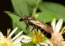 The sweat bee genus Lasioglossum is the largest of all bee genera, containing over 1700 species in numerous subgenera worldwide.[1][2] They are highly variable in size, coloration, and sculpture; among the more unusual variants, some are cleptoparasites, some are nocturnal, and some are oligolectic. Most Lasioglossum species nest in the ground, but some nest in rotten logs.