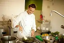 While studying at university, she came up with the idea to cook and promote vegan food in her restaurant "Vegan Kitchen and Bakery". Opening its doors in 2010, it was the first vegan restaurant in Switzerland.[13][14][15] She later sold the restaurant to Soyana, a Swiss company selling organic vegan food.[16] Between 2015 and 2018, she worked with the Klubschule Migros to realize a vegan cooking course.[4] During the COVID-19 lockdowns, Wildbolz was involved in revamping the concept of the Zürich restaurant Maison Blunt, re-branding it to Maison Raison with a vegan menu and organic supplies. Furthermore, she coached the kitchen team and initially worked herself as head chef.[17][18][19] The restaurant was sold to Zineb Hattab in September 2021 and is now operating under the name Dar.[20] Within the scope of her entrepreneurial activities, she runs a catering business called Future Cuisine, gives cooking classes and works as a consultant and keynote speaker for plant-based nutrition. Furthermore, she has founded the startup company PLANTBOX, a cooking box that aims to familiarise people with plant-based cooking and nutrition at home.[4][21] In 2021, her vegan cake dessert range KUBO was launched, a frozen dessert range developed for restaurant businesses.[9][8] As of April 2022, Wildbolz has released two vegan cookbooks, contributed to others and is working on her next publication about the future of nutrition.[22] Additionally, she works as an expert and teacher at the Neuro Culinary Center in Vitznau and as Creative director for Soil to Soul.[23][24] Wildbolz's key topics revolve around the question of feeding the growing global population sensibly and sustainably, and the future of food. She has been featured in various media appearances.[5][25] She works as an advisor to companies and helps them adopting a sustainable approach.[26][11][1] Lauren Wildbolz resides in Zürich.[8]